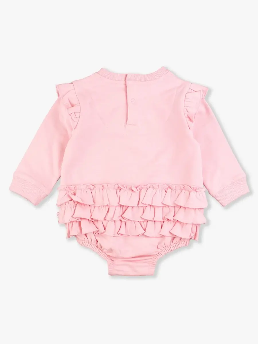Knit Long Sleeve Sweatshirt Bubble Romper - Pink